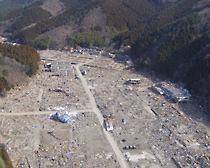 平野部は津波の被害と地盤沈下により壊滅的な状態