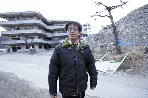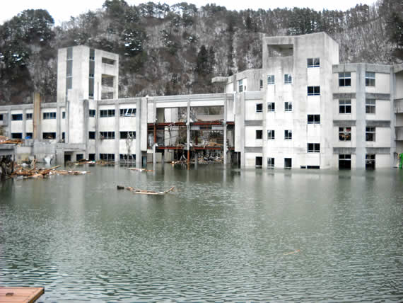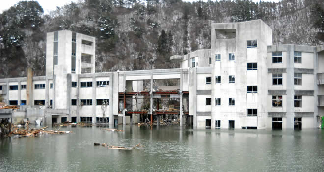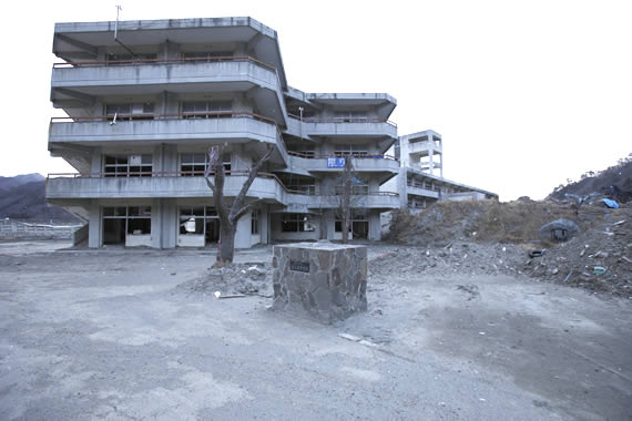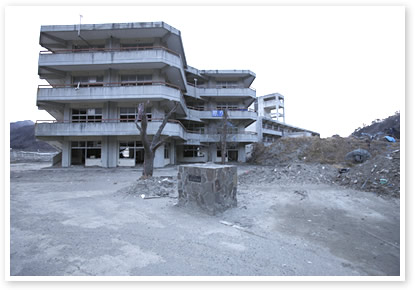 写真4・震災から10ヶ月経った現在 未だ瓦礫の中に佇む釜石東中学校