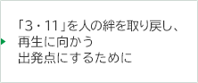 そして、3つ目が今、一番重要だと考えていることで、一人一人が周囲の痛みや弱さに関心を持って、お互いが支え合っていくためです。震災発生直後は大変悲惨な状況でしたが、金持ちも貧乏人もない、助け合いと支え合いがあり、「人間捨てたものではない」と思える経験をたくさんしました。ところが、その後、回復スピードの人による違いの中で、皆ばらばらになっていきました。そして、震災発生直後の助け合いが負担になり、人間関係が密接なのが逆にしんどいと思ったり、その経験がトラウマになって人間関係が希薄な方が楽だったりという意識がまん延している状況さえあります。