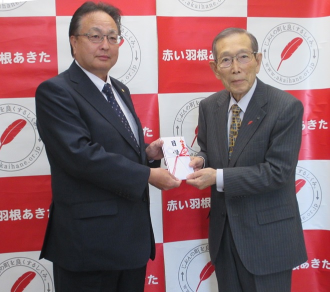 11月18日(金)には、秋田市の秋田県社会福祉会館において、寄付金50万円の贈呈式が開催されました。