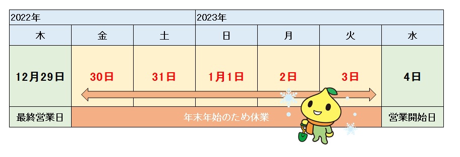 2022年12月30日(金)~2023年1月3日(火)まで年末年始のため休業させていただきます。