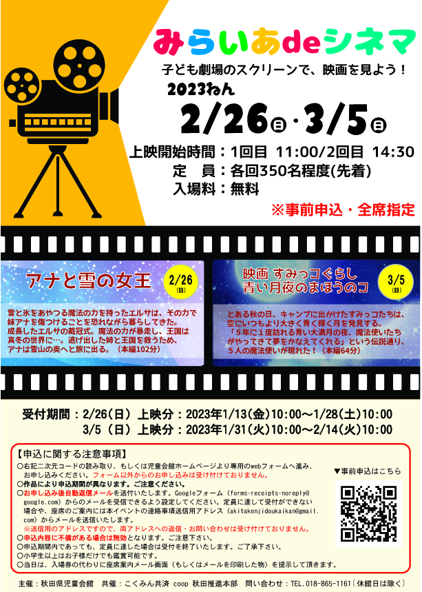 イベント「みらいあ de シネマ」を秋田県児童会館「みらいあ」で