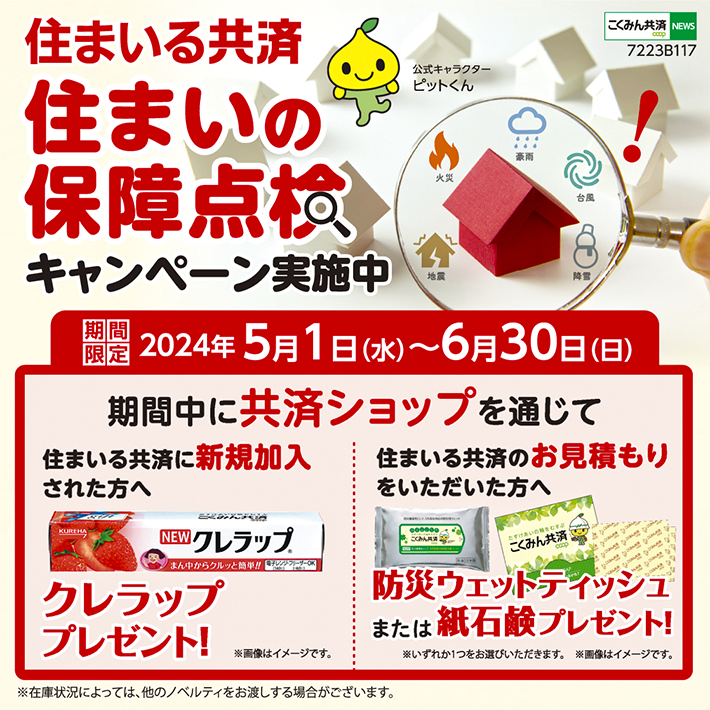また、共済ショップを通じて住まいる共済に新規加入された方へ、「クレラップ」をプレゼント!