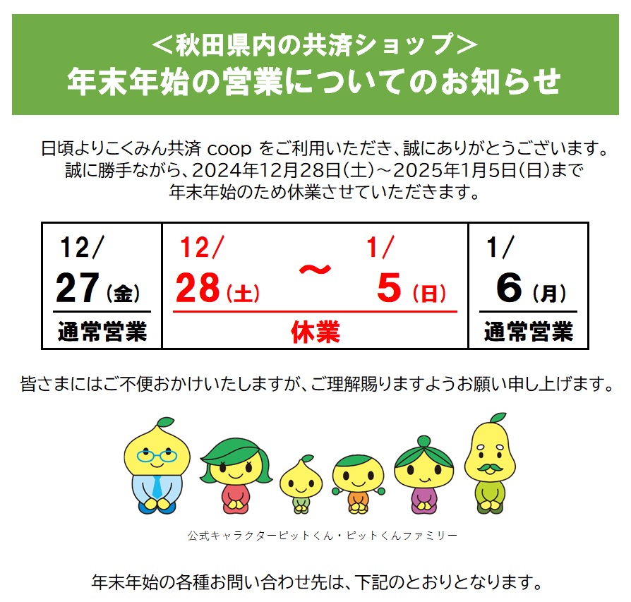 資料発送やお問い合わせにつきましては、1月6日以降に順次対応させていただきます。