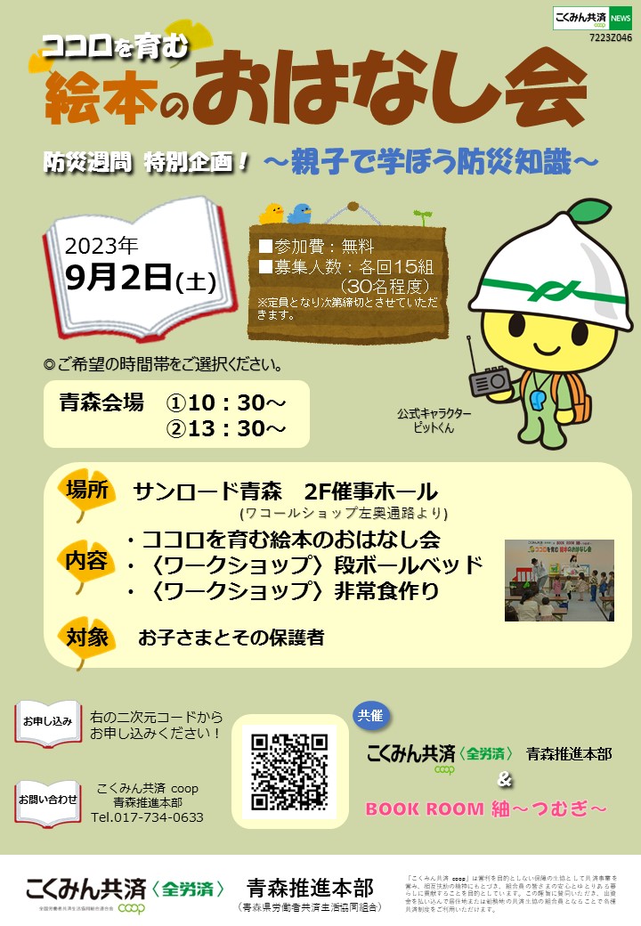 その一つとして、今年度も青森市の「BOOK ROOM 紬~つむぎ~」さんとの共催で子育てイベント・防災イベントを開催いたします!