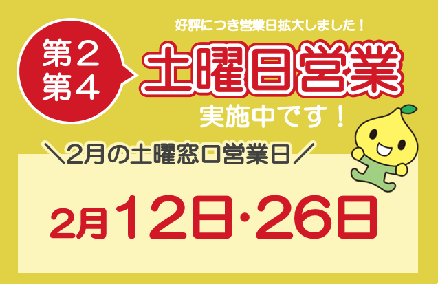 第2・4土曜日 午前10時~午後4時(店舗窓口のみ)