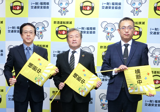 (左:こくみん共済 coop 矢田本部長・中央:福岡県交通安全協会戸谷専務・右:自治労福岡県本部坂田副委員長)