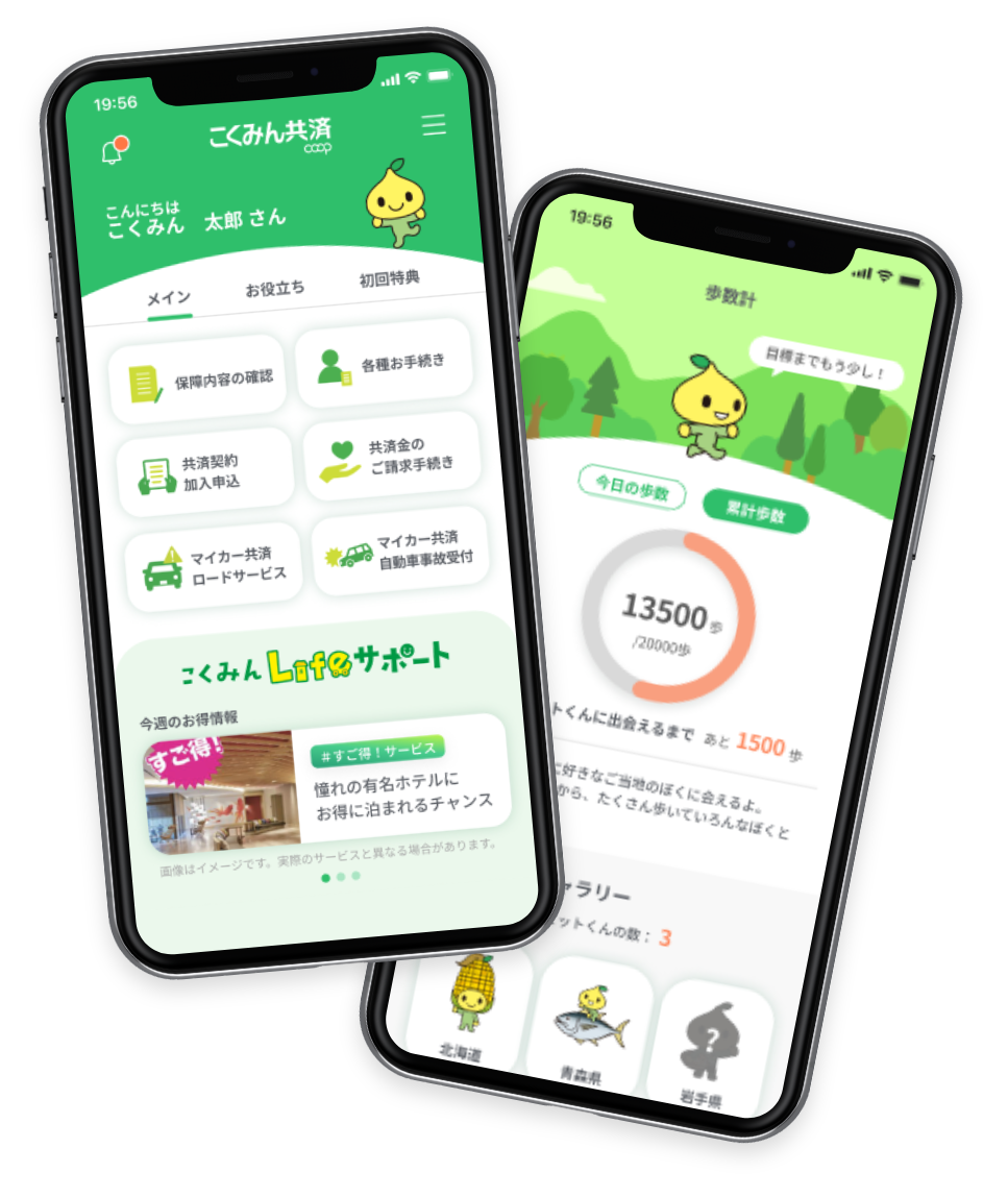共済金のご請求手続きや契約の変更・継続手続き、47都道府県のご当地ピットくんに出会える歩数計機能など、皆さまに役立つコンテンツをご用意しております。