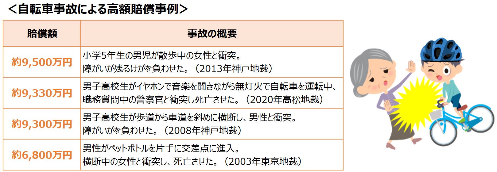 高額賠償から身を守り、安心・安全に自転車生活をおくるための保障として、