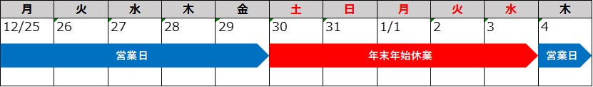 年末年始営業日のお知らせ