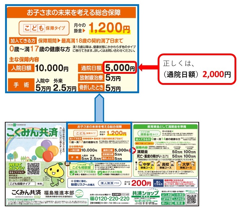この度、弊会よりリビング小学生新聞「てとて13号」(2024年9月1日発行)に出稿いたしました「こくみん共済(こども保障タイプ)」の広告について、誤表記がございましたので、以下のとおりご連絡を申し上げます。