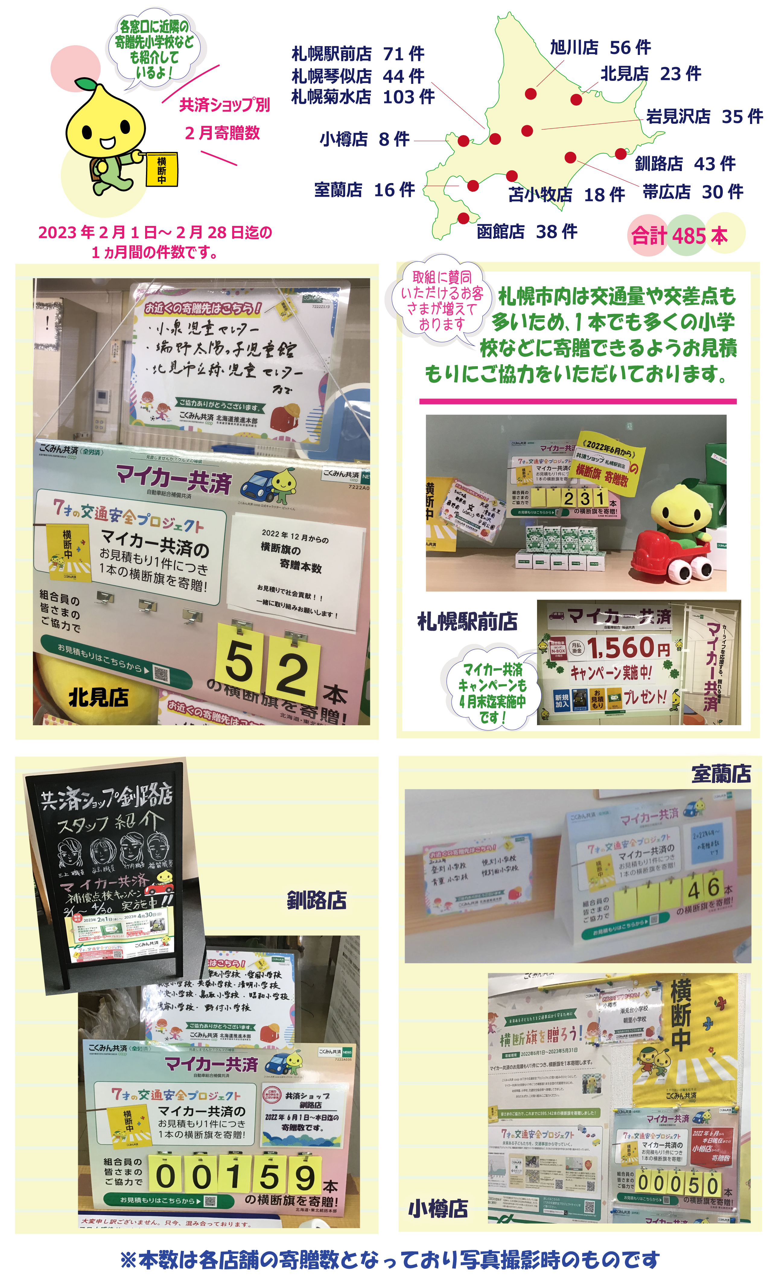 道内共済ショップ『7才の交通安全プロジェクト』取り組みのご紹介 2月寄贈数。