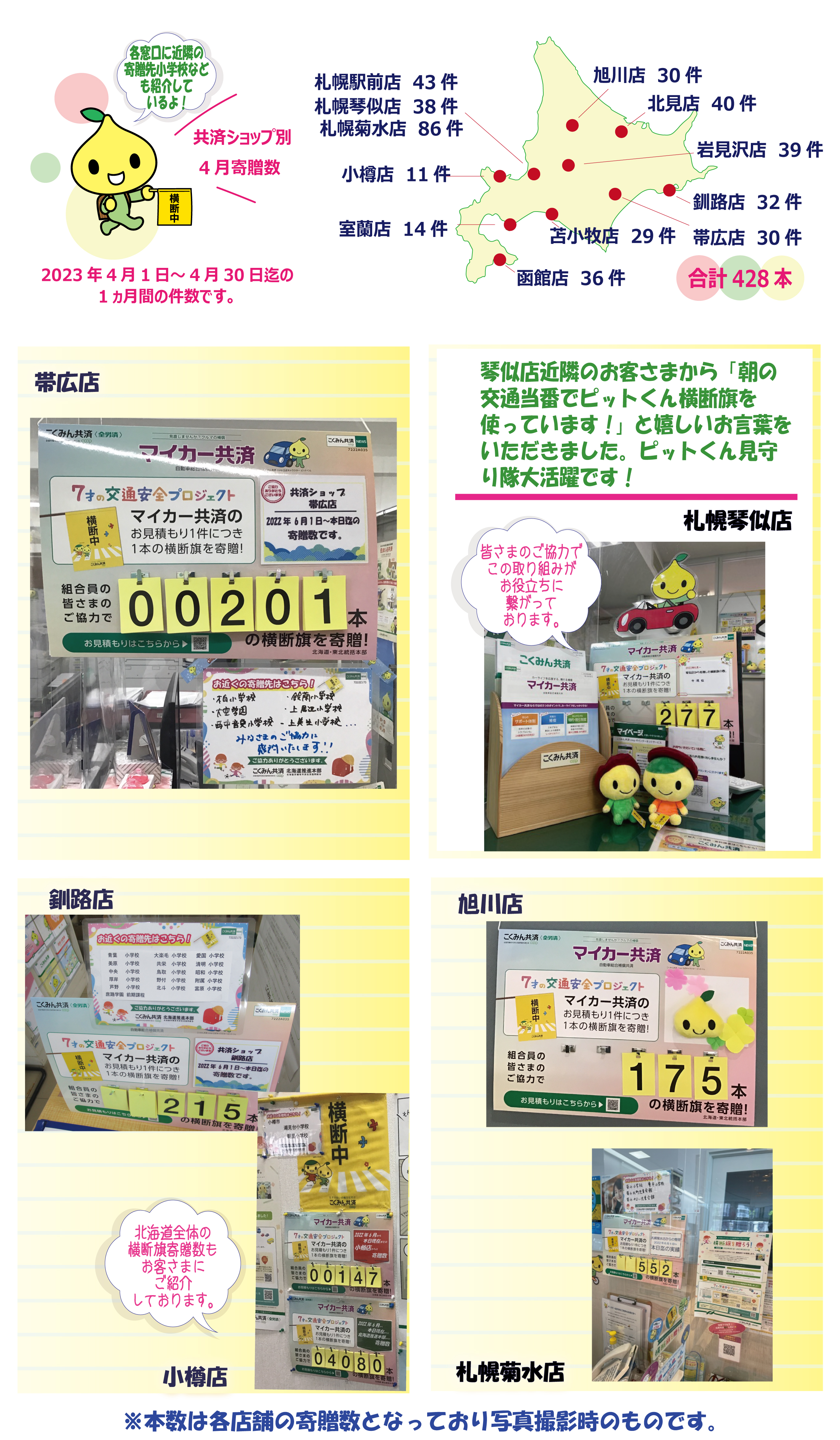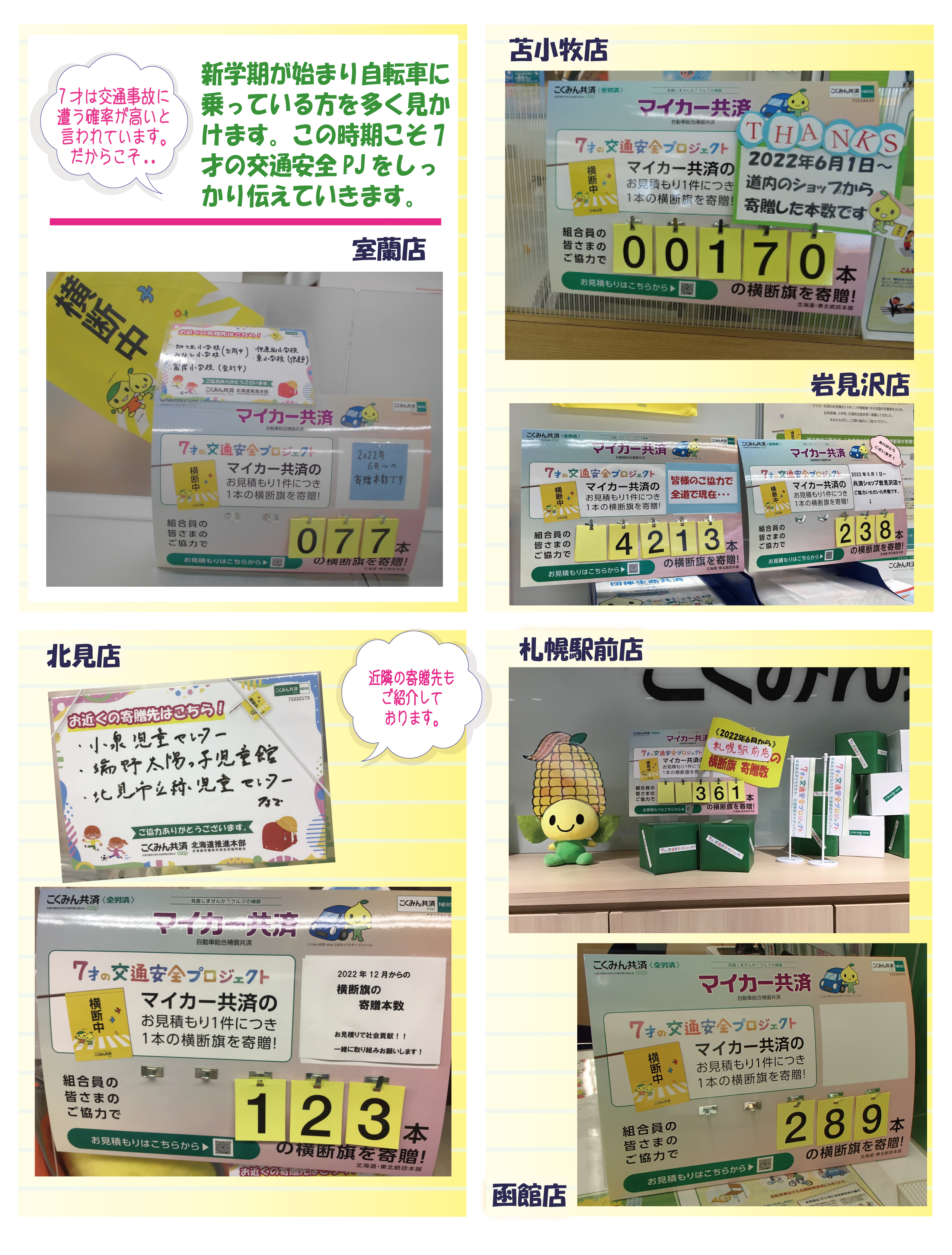 道内共済ショップ『7才の交通安全プロジェクト』取り組みのご紹介 4月寄贈数。