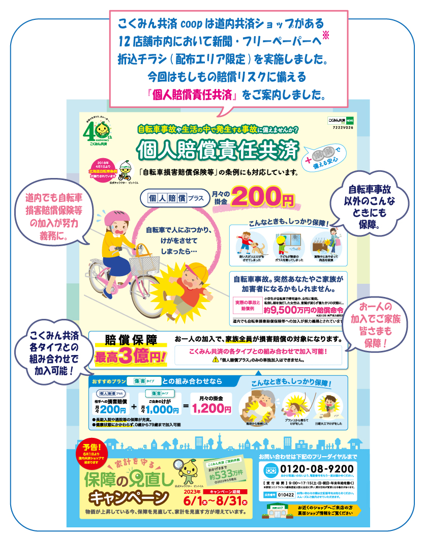 ※今回ご紹介した『個人賠償責任共済』についてご不明点やその他何かありましたら お近くの共済ショップ にお気軽にお問い合わせください。