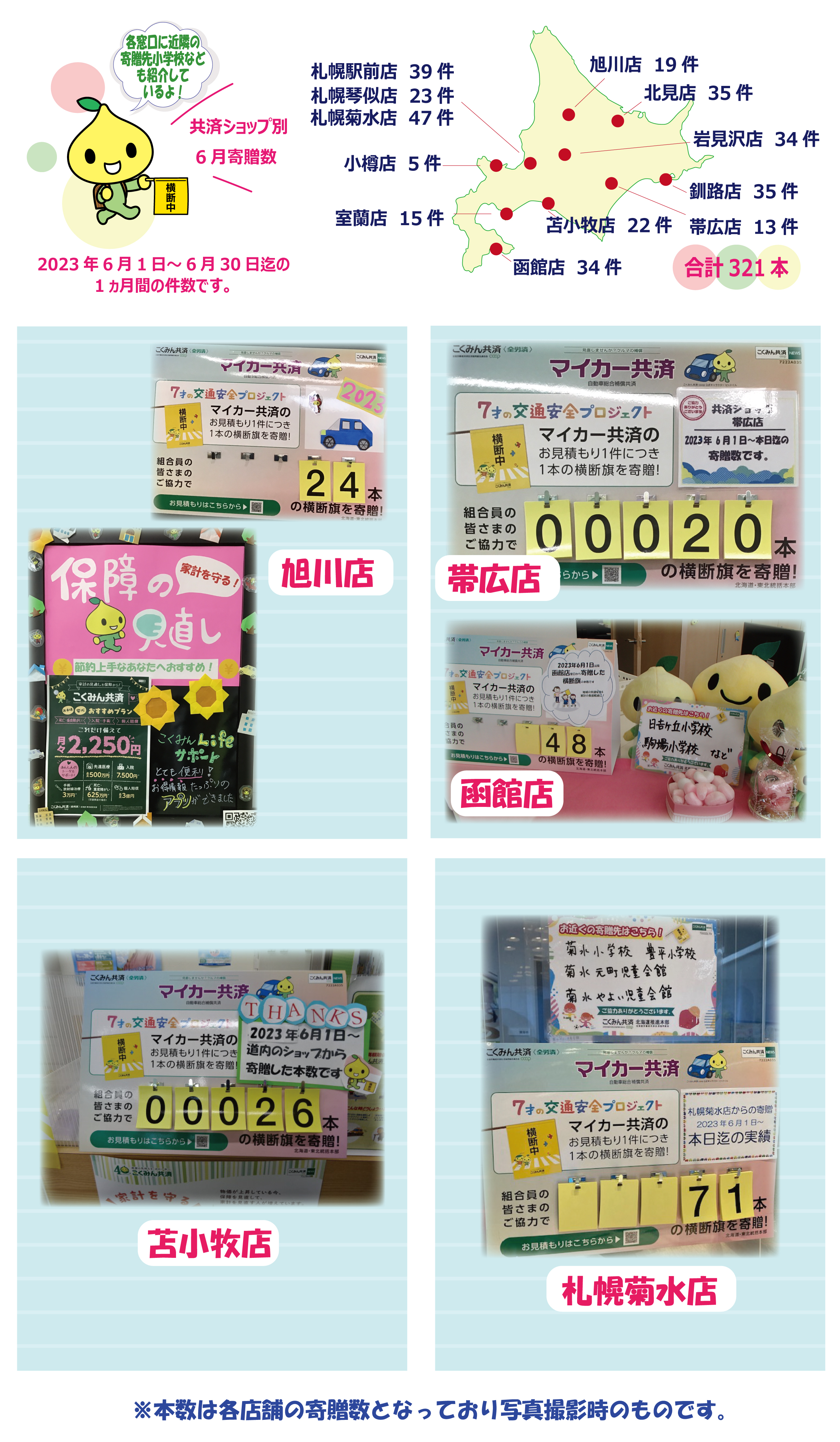 道内共済ショップ『7才の交通安全プロジェクト』取り組みのご紹介 6月寄贈数。