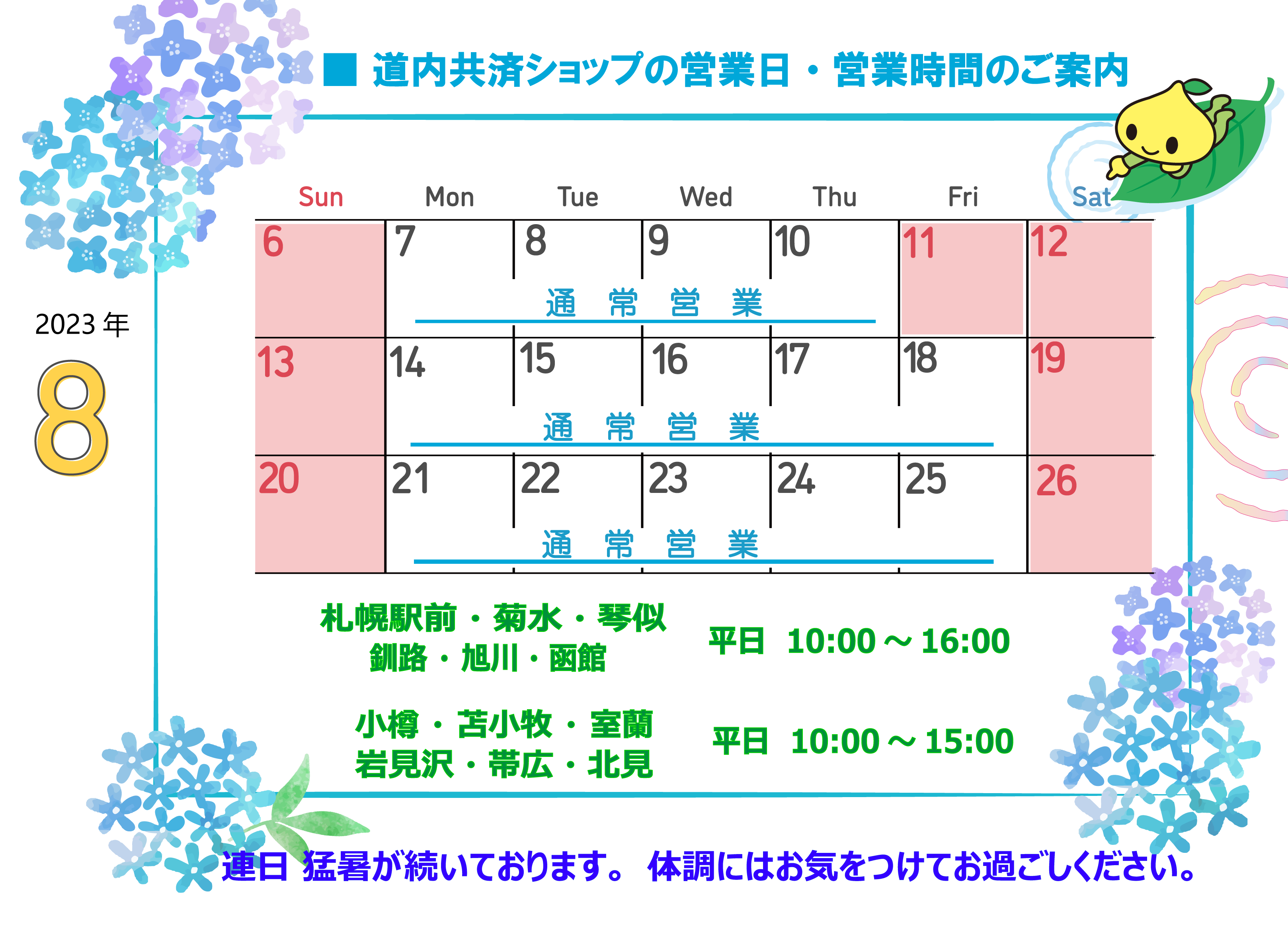 共済ショップ お盆期間の営業日・営業時間のご案内