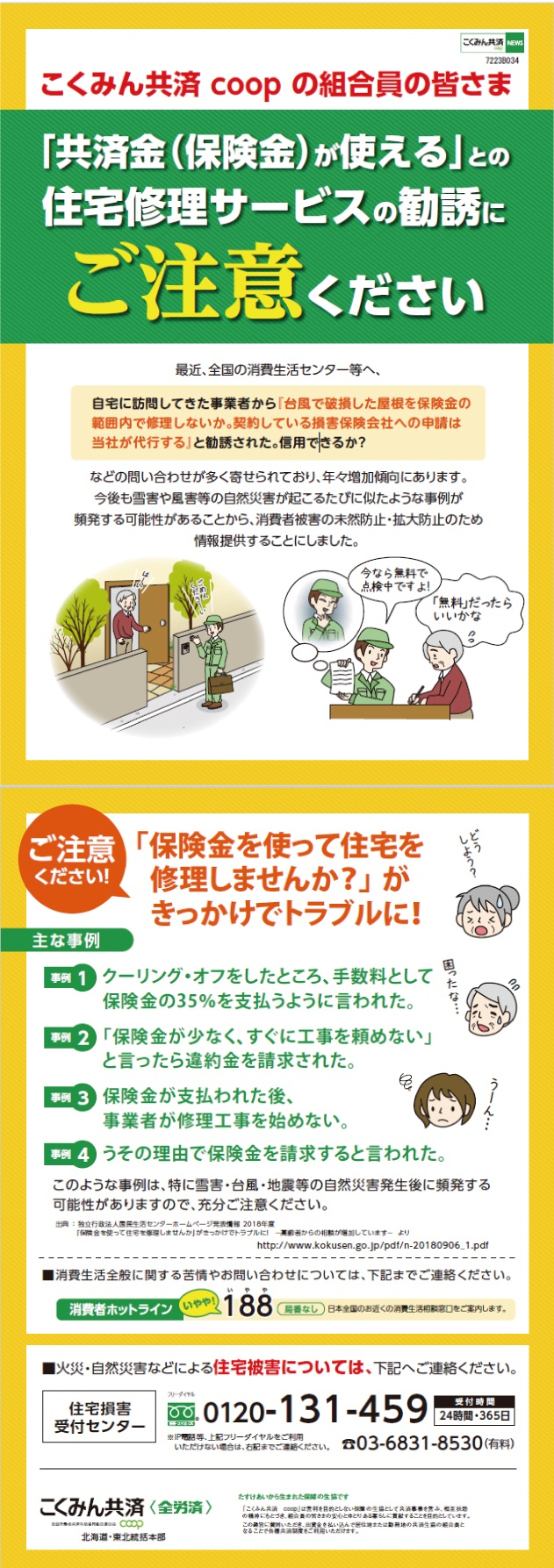 【ご注意ください!!】修理業者と名乗る電話・訪問に!