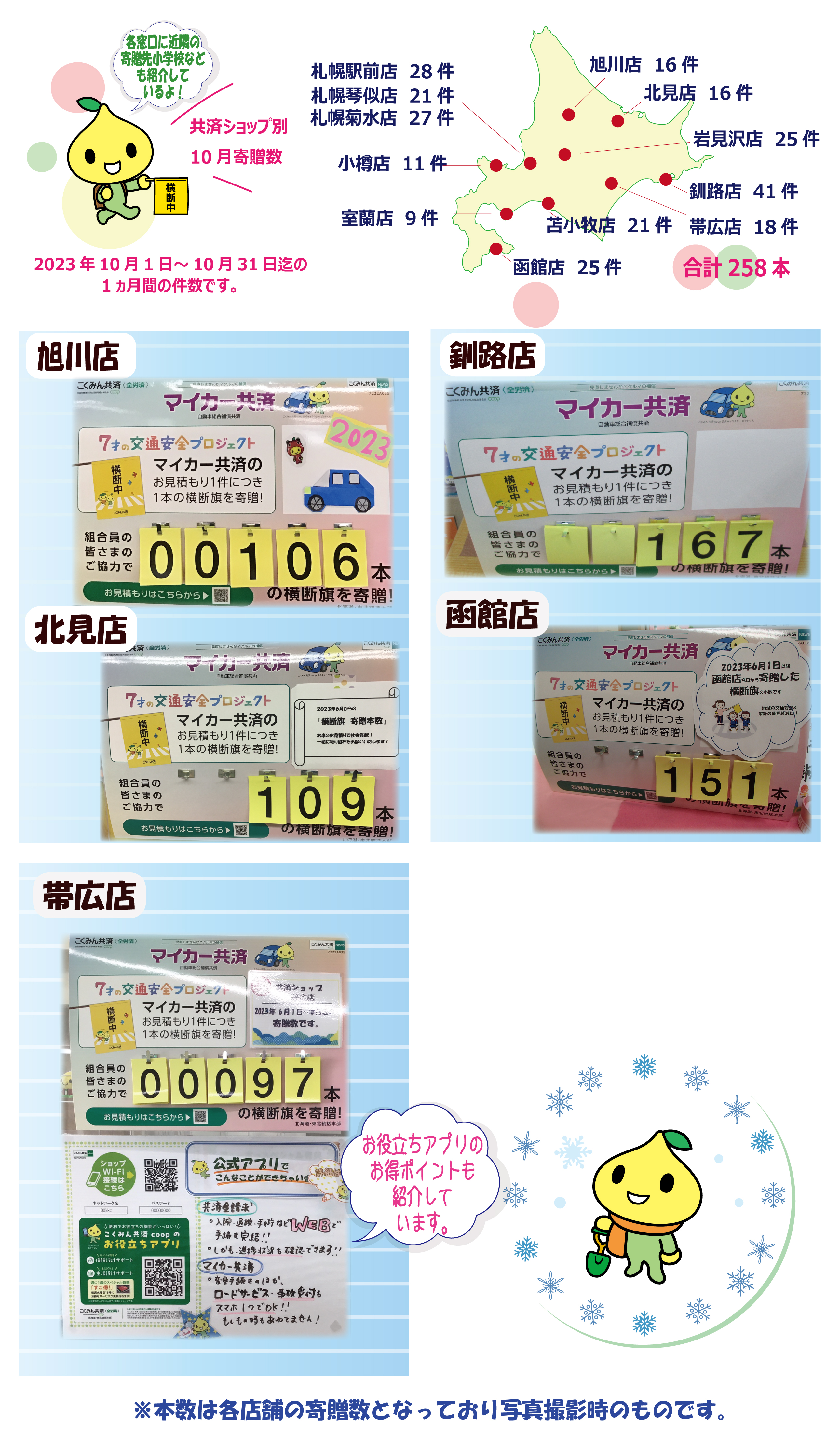 ☆『7才の交通安全PJ』横断旗取り組みのご紹介 10月寄贈数 ☆