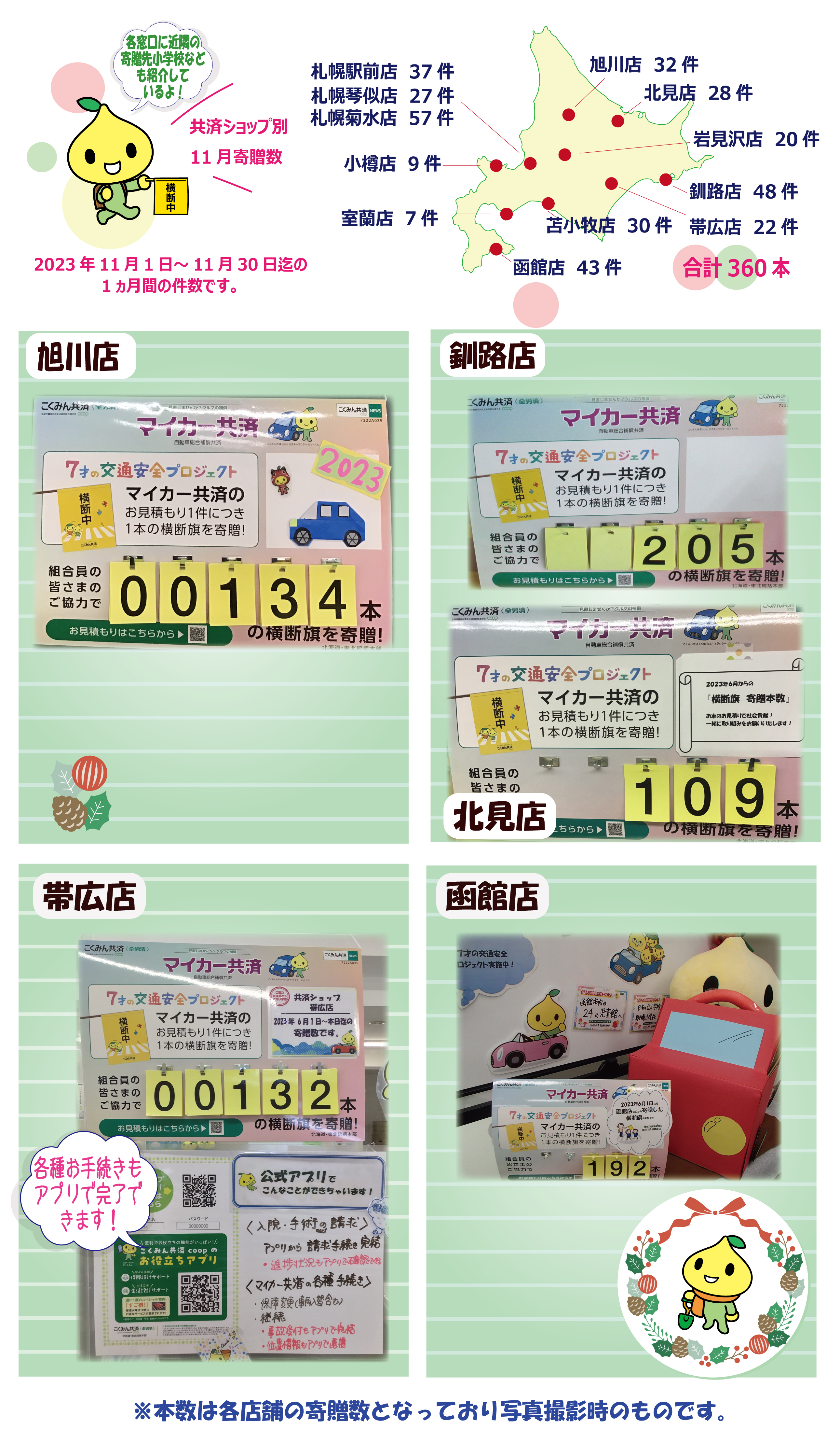 道内共済ショップ『7才の交通安全プロジェクト』取り組みのご紹介 11月寄贈数