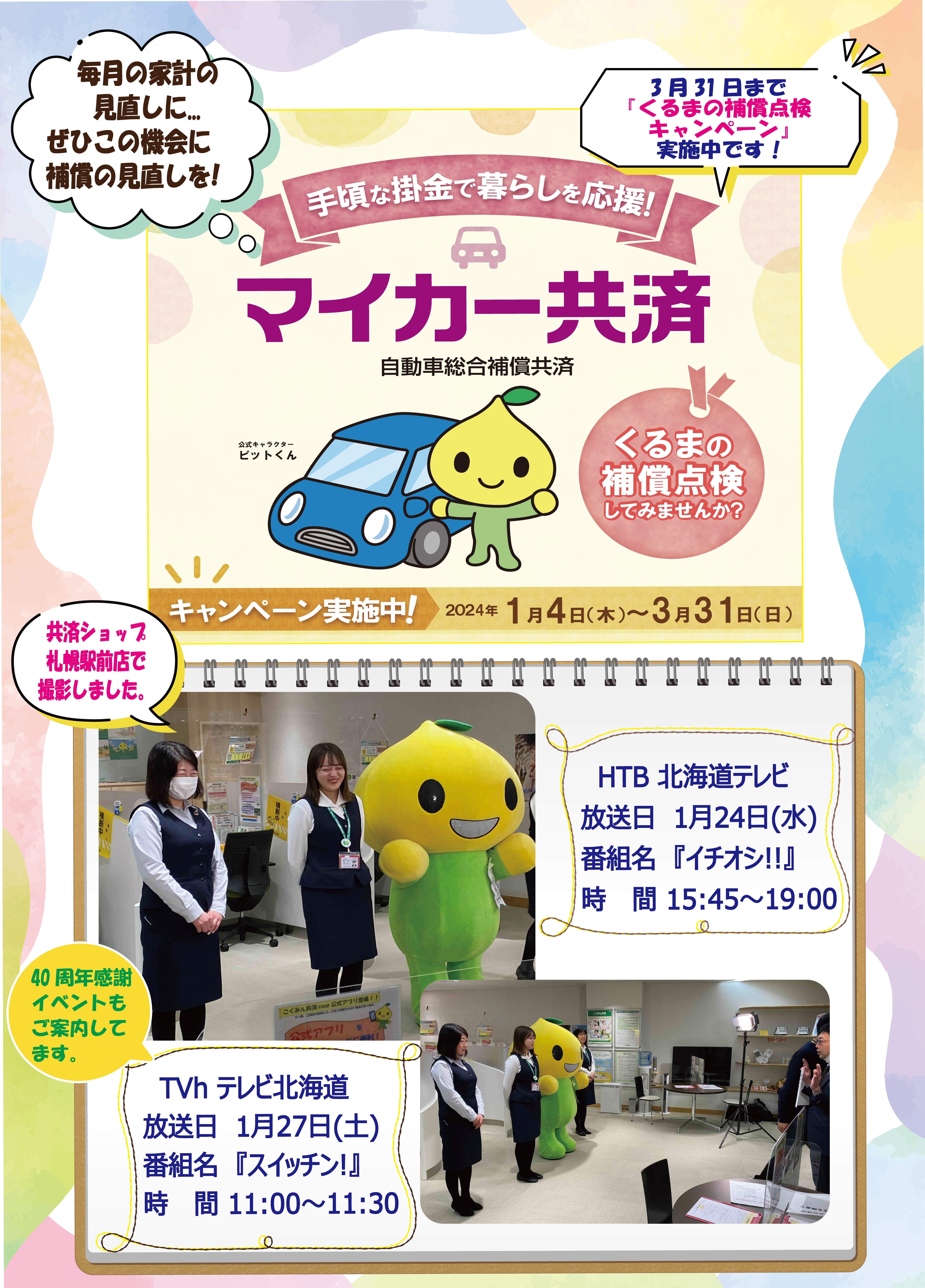 TV放映のお知らせ。『くるまの補償点検キャンペーン実施中です』