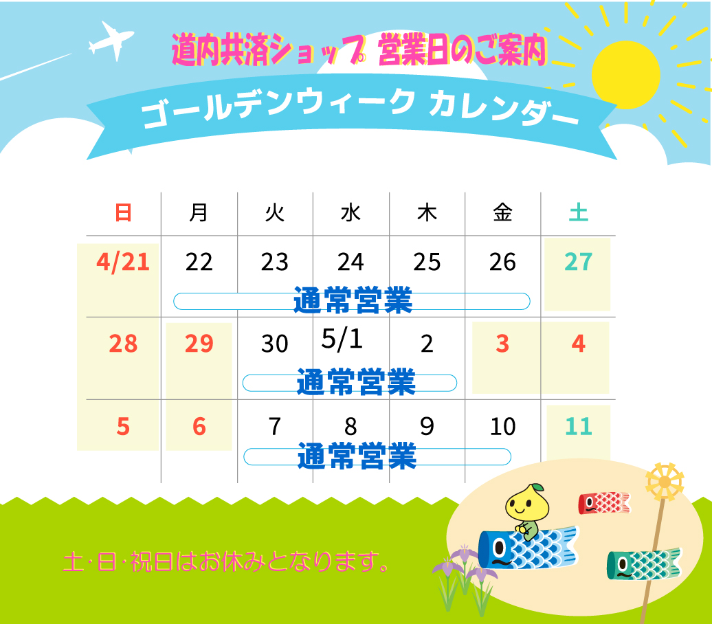 ゴールデンウィーク期間中の窓口営業時間のご案内