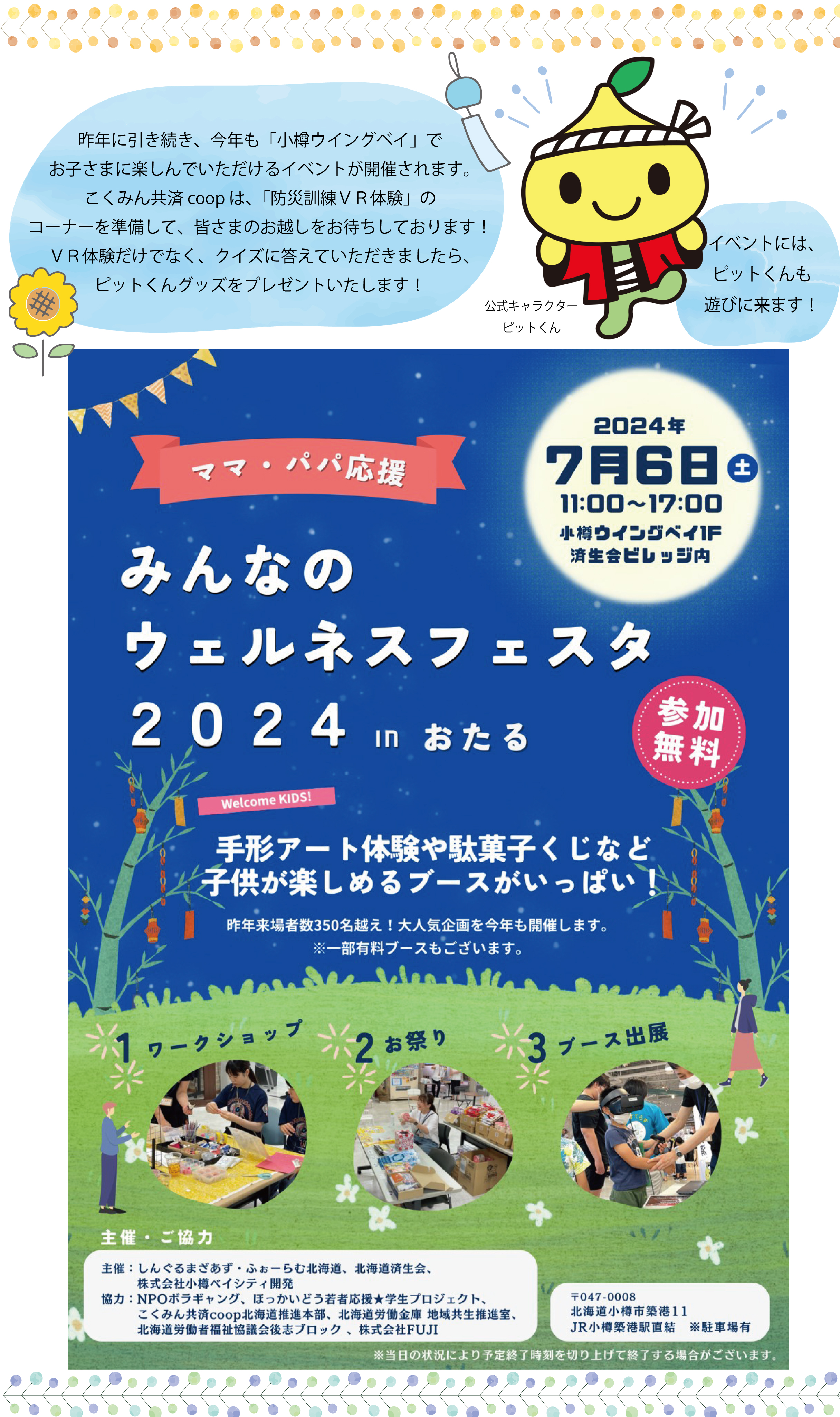 7月6日(土) 『みんなのウェルネスフェスタ2024inおたる』開催のご案内