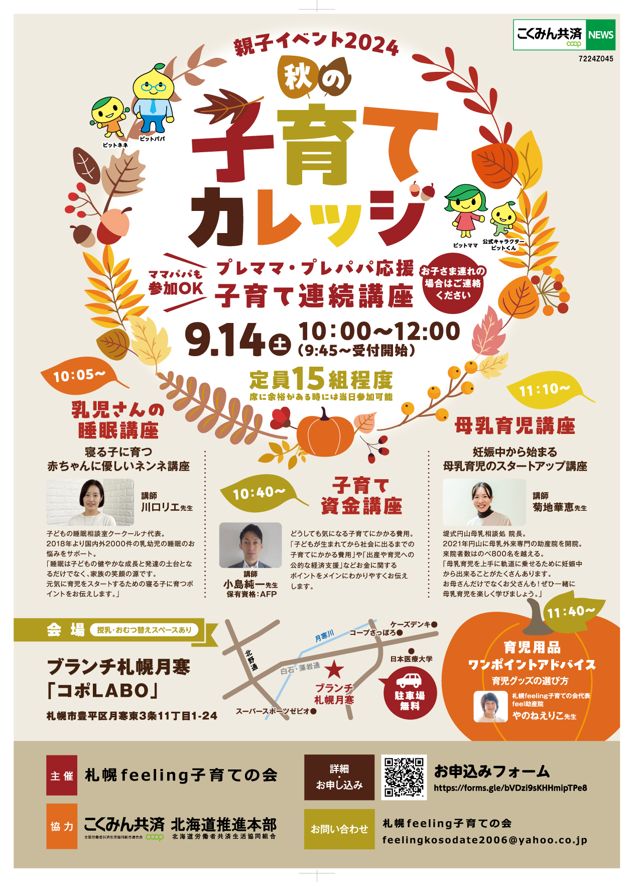 2024年 親子イベント 『秋の子育てカレッジ』開催のお知らせ