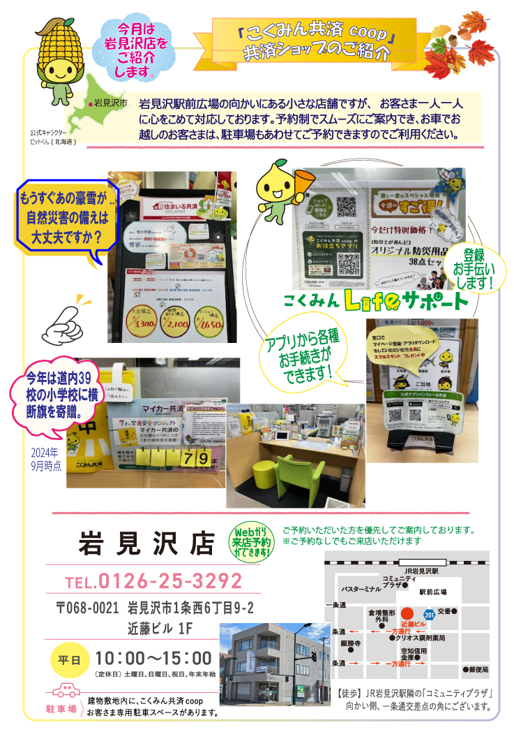 『7才の交通安全PJ』『道内の共済ショップのご紹介』今月は共済ショップ岩見沢店です。