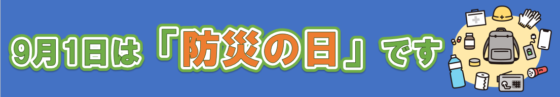 災害についての認識を深めるとともに、これに対する備えを充実強化することにより、災害の未然防止と被害の軽減に資するよう、防災の日を含めた1週間(8月30日~9月5日)は「防災週間」と定められており、9月1日(日)は「防災の日」です。