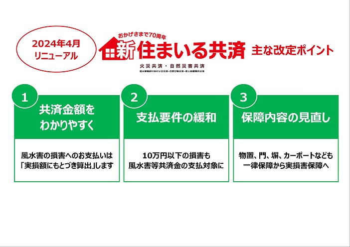 こくみん共済 coop <全労済>の住まいる共済(家の保障)が2024年4月1日にリニューアルいたします。