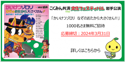 ミュージカル「かいけつゾロリ なぞのおたから大さくせん!!」に1000名さま無料ご招待。