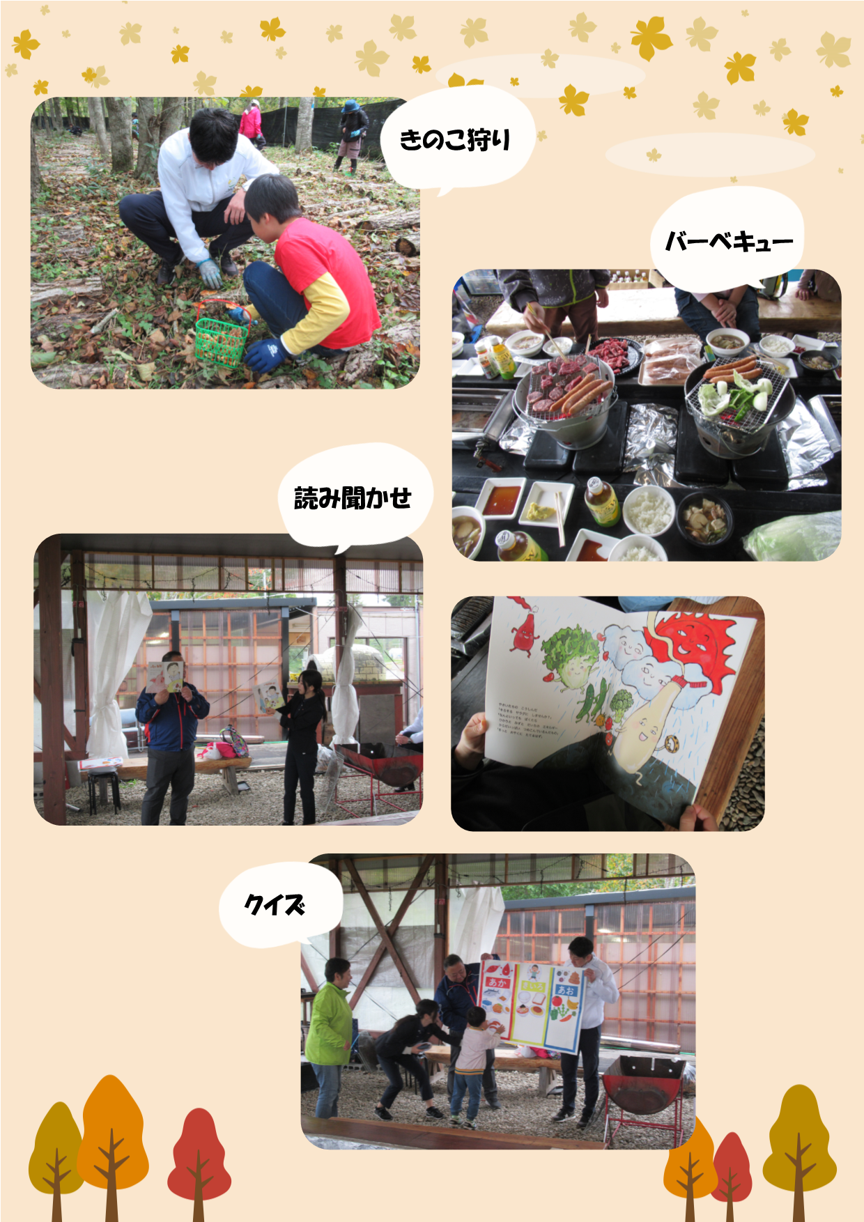 お昼のバーベキューは東日本フード株式会社さんからお肉やウインナーを提供していただき、食育絵本の読み聞かせや栄養に関するクイズをしながら、皆で楽しく交流しました。