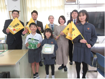 活協同組合別所副理事長・石井業務部長前列坂元台小学校児童3名
