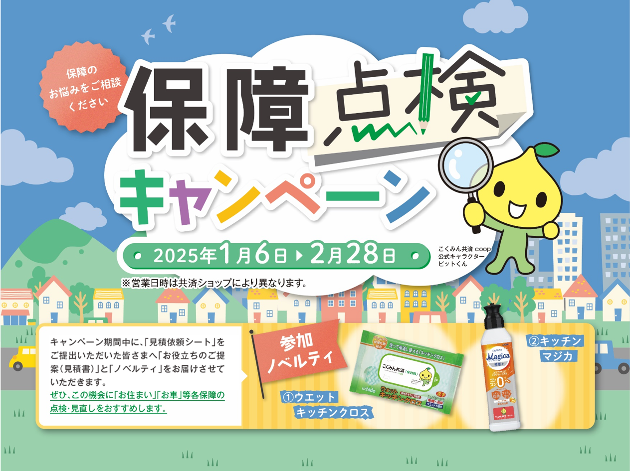 2025年1月6日から2月28日までの期間、九州・沖縄エリアの共済ショップで「保障点検キャンペーン」を実施します。