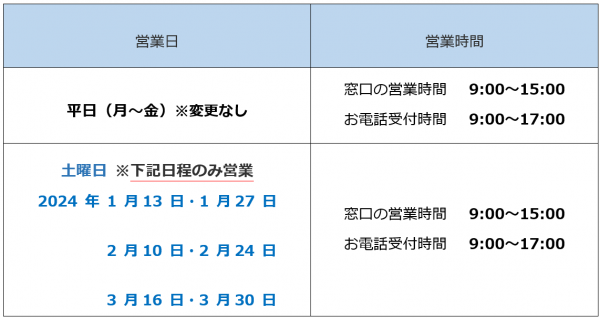 共済ショップ平塚店は、2024年1月~3月の間、土曜営業日を下記のとおりとさせていただきます。
