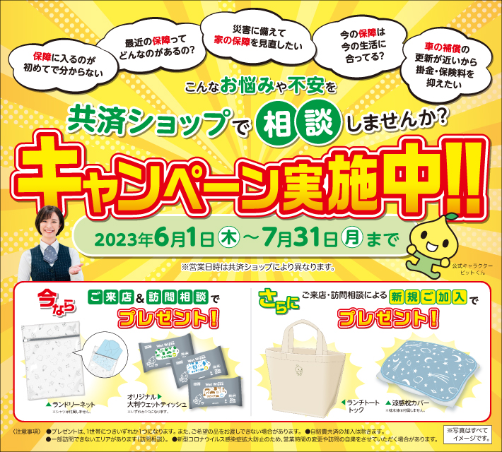 2023年6月1日~7月31日まで、九州・沖縄の共済ショップで 「キャンペーン」を実施します♪