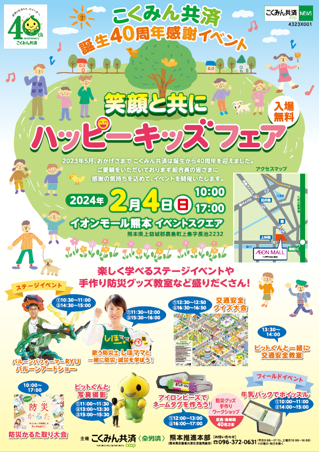 ああああ~こくみん共済誕生40周年記念~ああああああああこくみん共済 coop 熊本推進本部あああああ「ハッピーキッズフェア」開催のお知らせ
