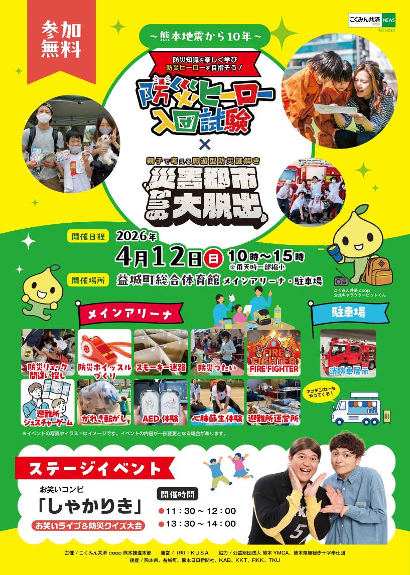 こくみん共済 coop 熊本推進本部では、熊本地震から10年を迎えるにあたり、「防災イベント」を開催いたします。