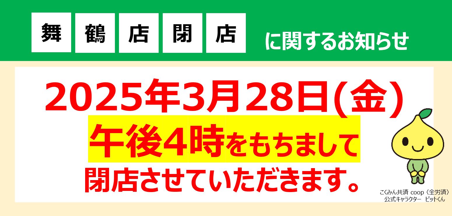 共済ショップ舞鶴店閉店のお知らせ