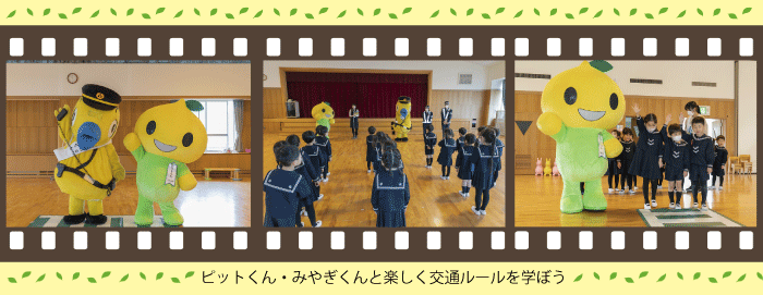 「ピットくん」も交えながら楽しく交通ルールを学びました。