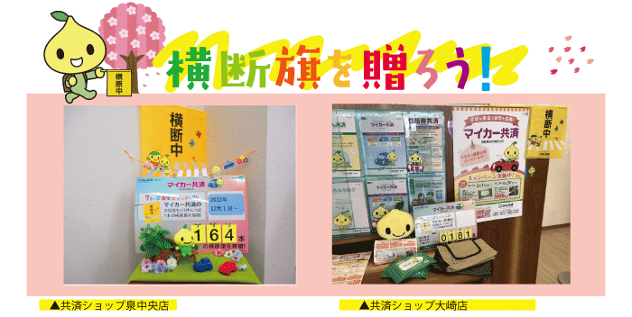 2019年よりマイカー共済のお見積もり1件につき、1本の横断旗を寄贈する取り組みを