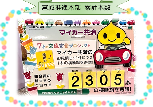 2019年よりマイカー共済のお見積もり1件につき、1本の横断旗を寄贈する取り組みを
