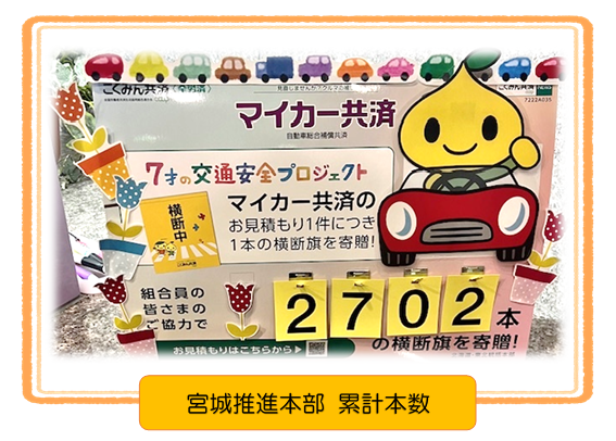 2019年よりマイカー共済のお見積もり1件につき、1本の横断旗を寄贈する取り組みを
