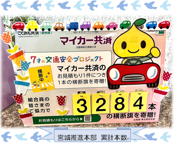 2019年よりマイカー共済のお見積もり1件につき、1本の横断旗を寄贈する取り組みを