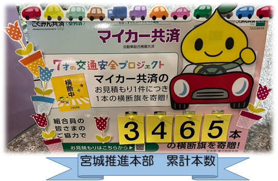 2019年よりマイカー共済のお見積もり1件につき、1本の横断旗を寄贈する取り組みを