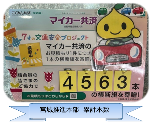 2019年よりマイカー共済のお見積もり1件につき、1本の横断旗を寄贈する取り組みを