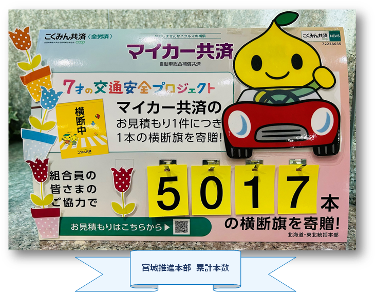 2019年よりマイカー共済のお見積もり1件につき、1本の横断旗を寄贈する取り組みを