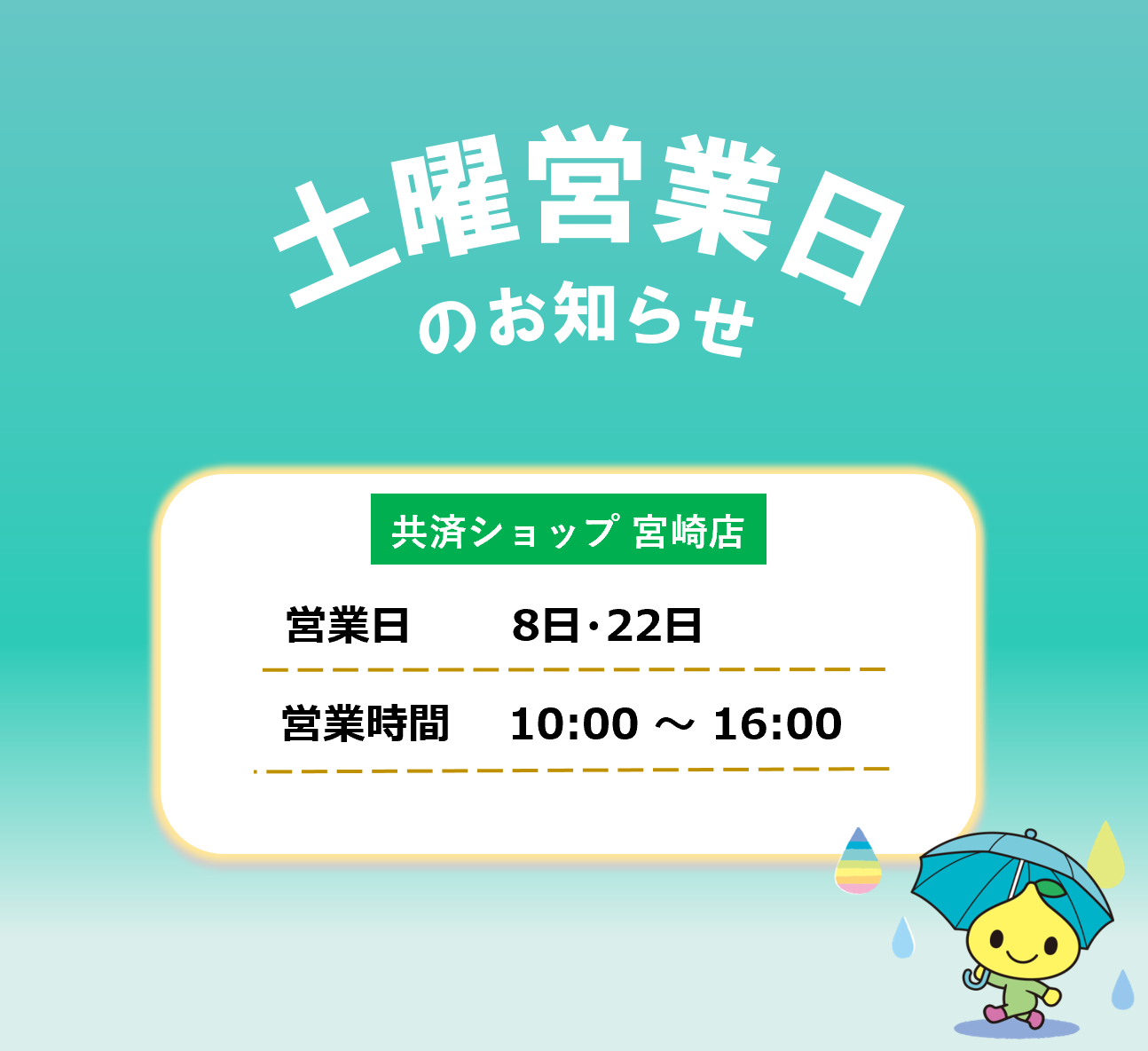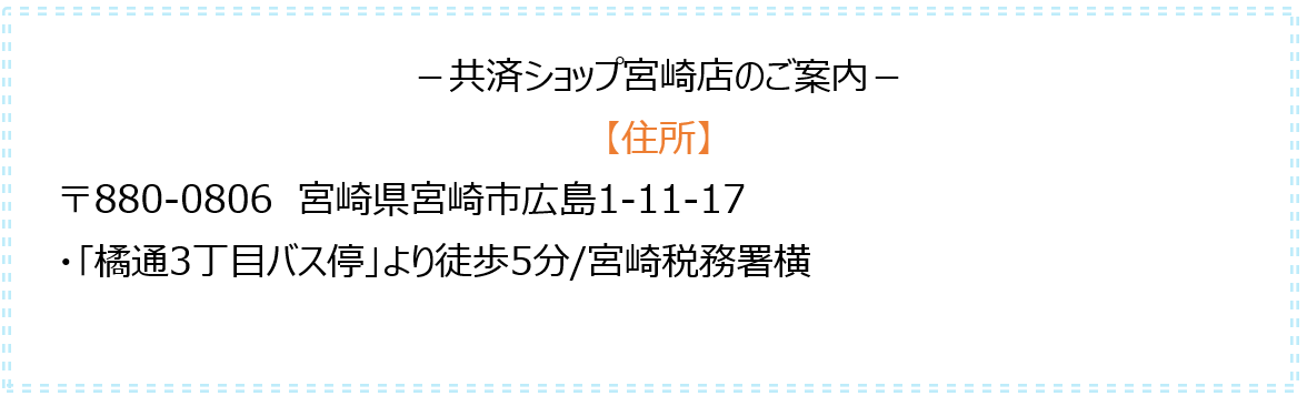 共済ショップ宮崎店では、平日だけでなく、第2・4土曜日も元気に営業しております。