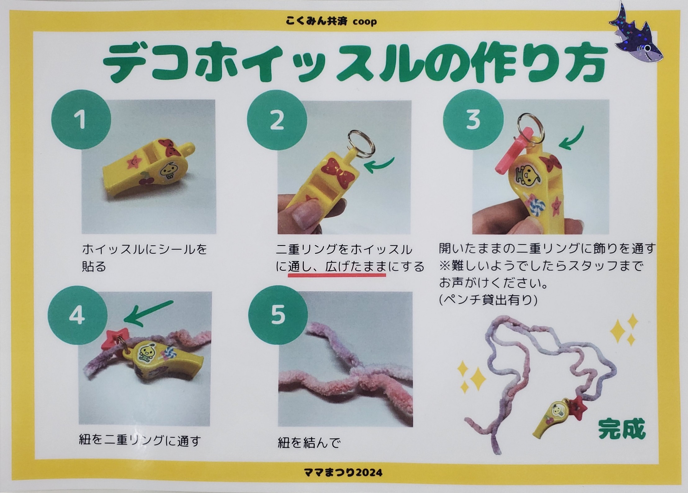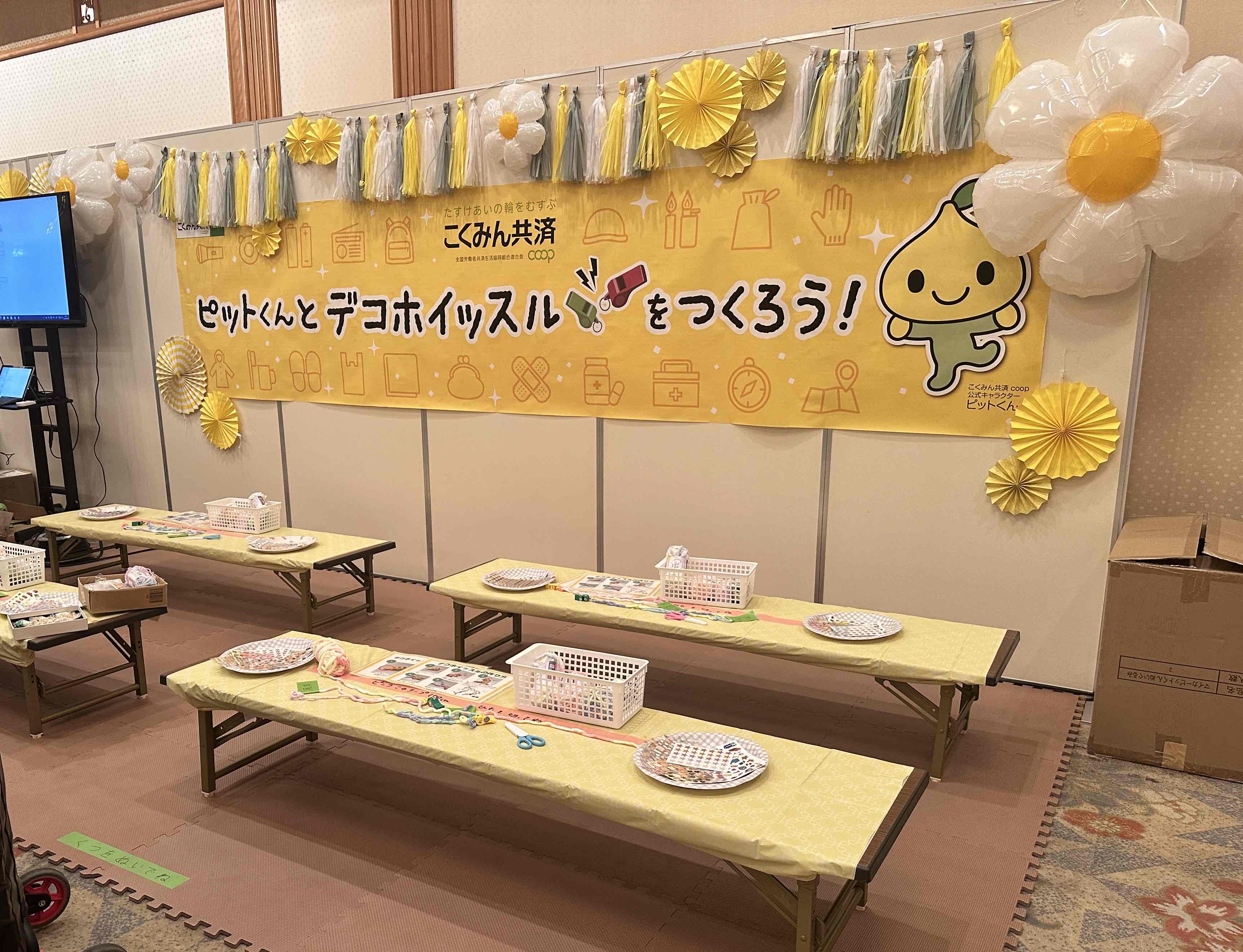 「子どもと一緒に備える防災」をテーマに、地震や自然災害を子どもと一緒に考えるきっかけづくりとして、ワークショップ(デコホイッスルづくり)と展示物による情報発信(自然災害の発生メカニズムの動画上映、防災バッグの展示)をおこないました。