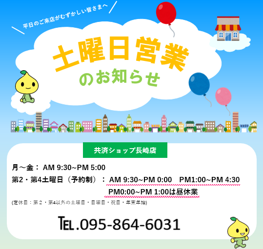 共済ショップの土曜日営業のお知らせ